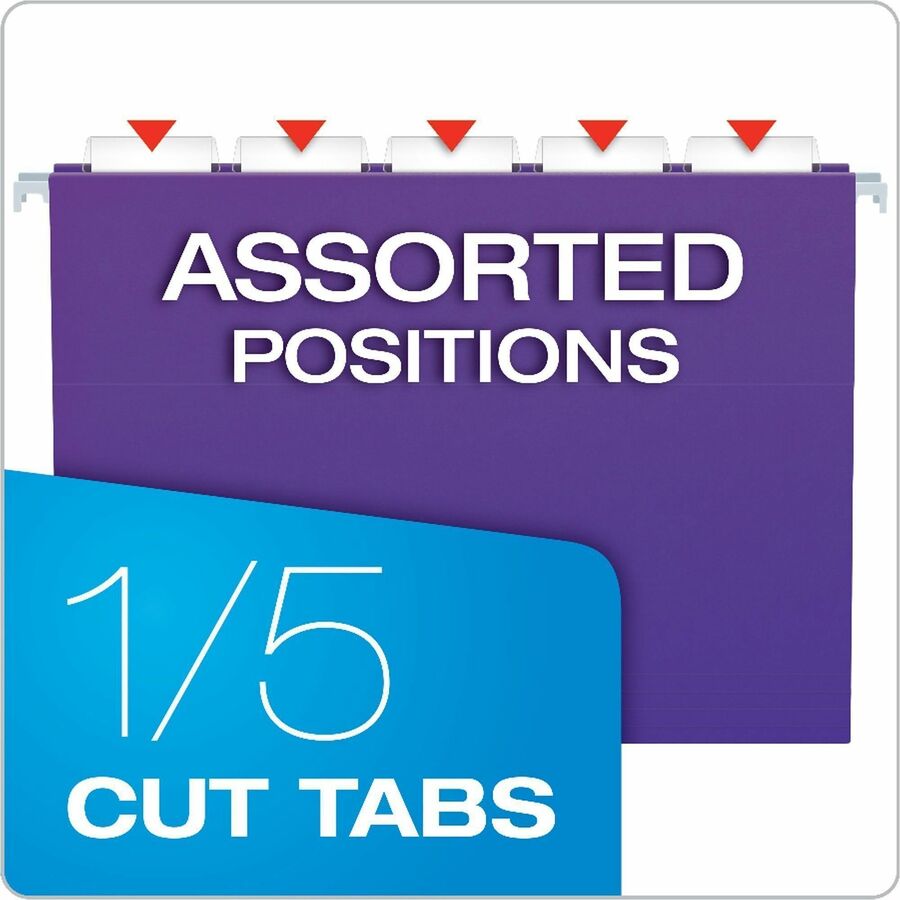 Recycled Hanging Folders provide a smart option for everyday filing. Color folders are made from 100-percent recycled fiber. Contrasting kraft paper interiors help prevent time-wasting misfiles. Hanging files include a printable label sheet and 25 clear 1/5-cut tabs. Files are letter size. |