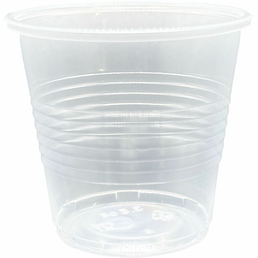 Transparent cup provides a practical way to serve cold, refreshing beverages to your guests, employees, customers and more. Smooth rim provides a satisfying sipping experience and is rolled to enhance the strength of the sidewall. Ridged exterior creates a slip-resistant surface to prevent accidental spills and messes as condensation collects. Disposable design allows quick, easy cleanup after each use. Cold cup is perfect for daily use, company gatherings, picnics, special events and more. |