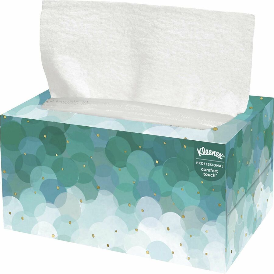 | Marketing Information | Say goodbye to soggy, messy stacks of paper hand towels and say hello to a much more convenient, hygienic countertop towel solution with these ultra-soft hand towels in a pop-up box. You'll get rid of messy towel stacks on counters and upgrade to a hygienic, sanitary towel solution. Each ultra-soft hand towel is made of highly absorbent, virgin fibers and delivers an exceptional hand-drying experience. Pop-up box is designed to dispense one hygienic paper towel at a time and has a water-resistant coating and poly shield to keep the towels from getting wet. Countertop box fits Kimberly-Clark professional dispensers in a variety of sleek styles (sold separately). They're a great solution for offices, lodging or any facility that prefers convenient countertop dispensing and favors a high-end experience for guests. |