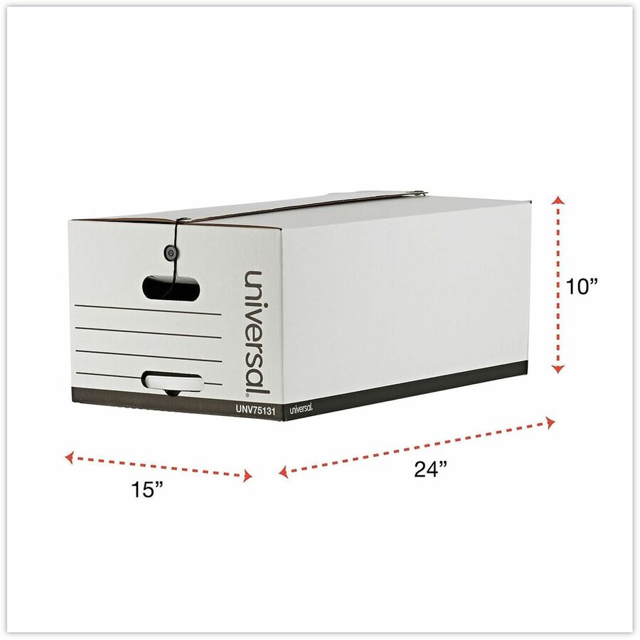 Internal Dimensions: 15" Width x 24" Depth x 10" Height - Media Size Supported: Legal - Flap, String/Button Closure - Medium Duty - Stackable - Corrugated Fiberboard - White - For Box File - 12 / Carton